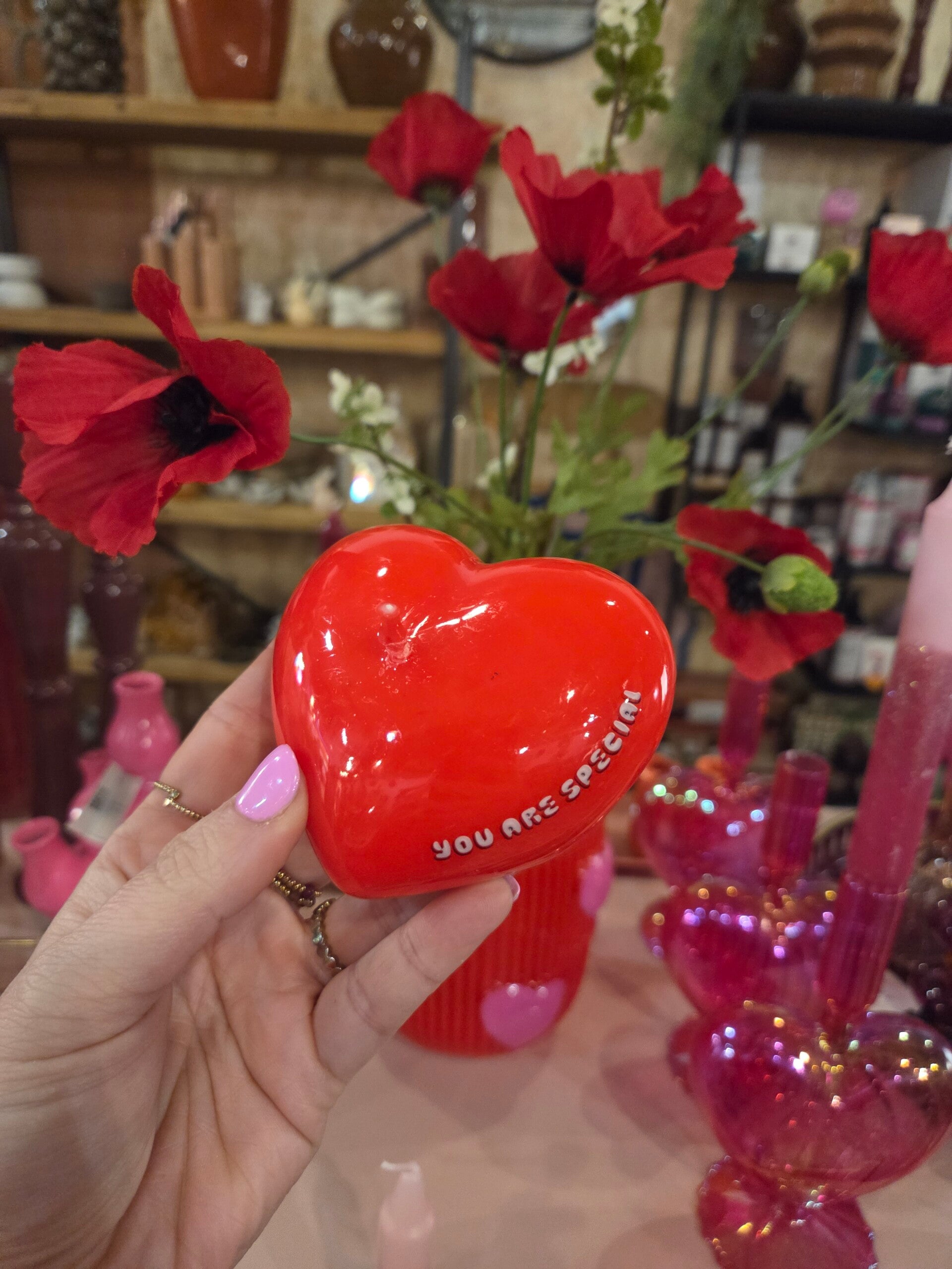 Lief kaarsje in de vorm van een hartje met de tekst "you are special"