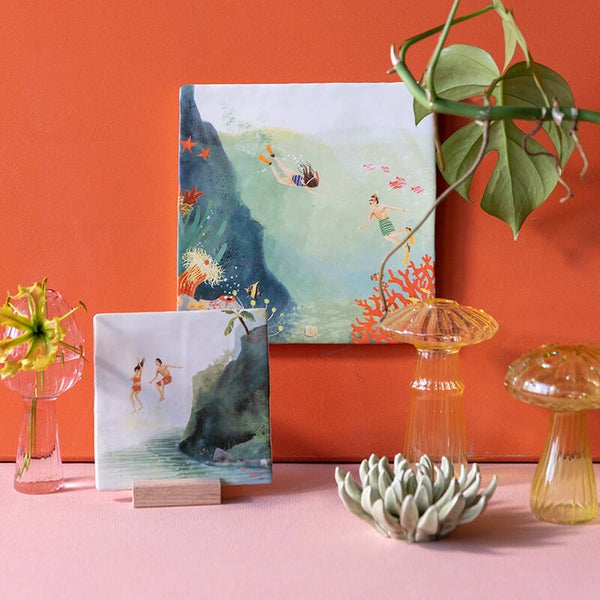 Een super leuk en eigentijds miniatuurverhaal op een tegel. Alle tegels worden in Nederland ambachtelijk gebakken op hoge temperatuur. De kunstwerkjes zijn dus hitte- en waterbestendig waardoor het bijzondere design levenslang mee gaat. Elk ontwerp is met de hand gebakken en daarmee uniek. De tegels worden geleverd met een ophangsysteem, maar we hebben ook leuke houten houdertjes om ze in te zetten!